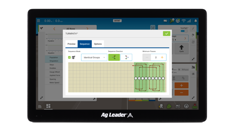 L'autoguidage SteerCommand Z2 de chez AGLeader va gérer le guidage vers le passage suivant.